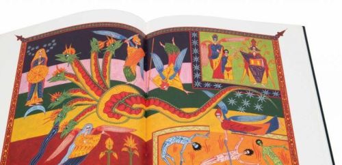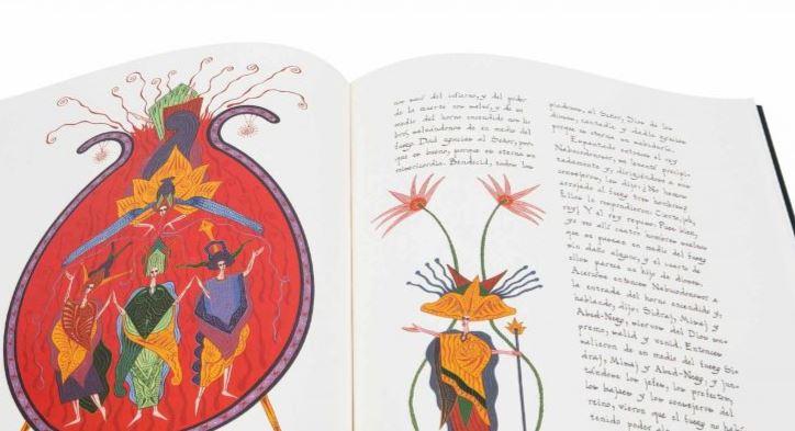 El Apocalipsis de Alcaíns es una reinterpretación contemporánea de las visiones de San Juan, concebida bajo la estética de los beatos mozárabes del siglo X. Javier Alcaíns recupera la fuerza del color plano —amarillos, rojos y azules intensos— y la estructura narrativa en bandas para traducir el terror sagrado al lenguaje del expresionismo moderno. La obra destaca por su caligrafía manual vibrante y una iconografía que simplifica las formas medievales para potenciar su carga simbólica y emocional. Cada página funciona como un lienzo donde la lucha entre las fuerzas celestiales y las bestias apocalípticas cobra una vigencia plástica absoluta. Esta pieza de bibliófilo de M. Moleiro Editor representa un puente único entre la tradición de los scriptoria hispanos y la sensibilidad artística del siglo XXI.