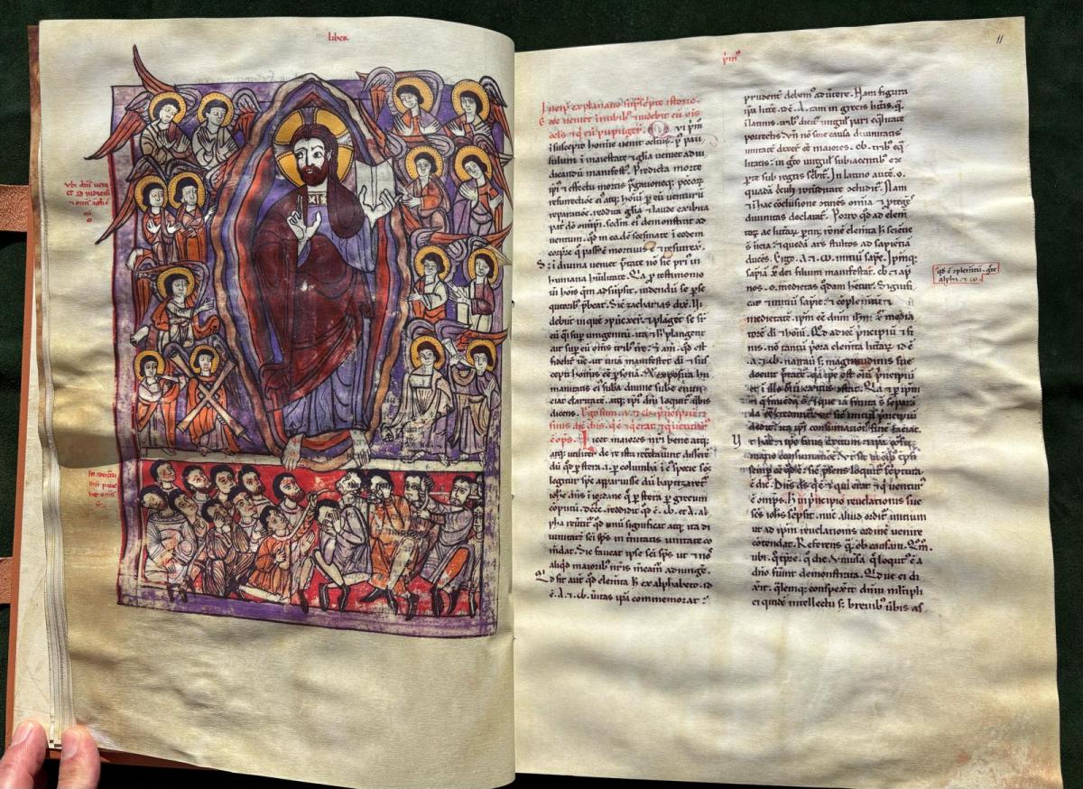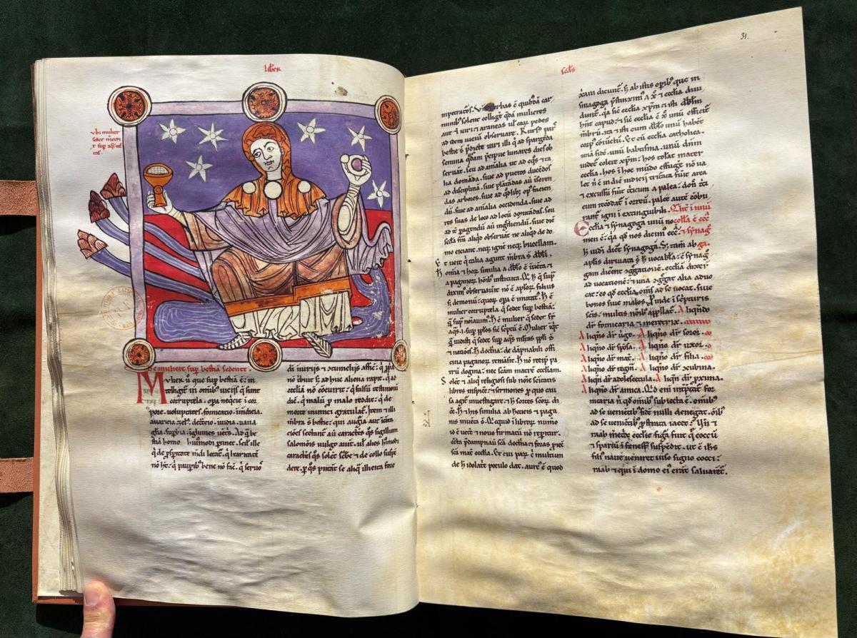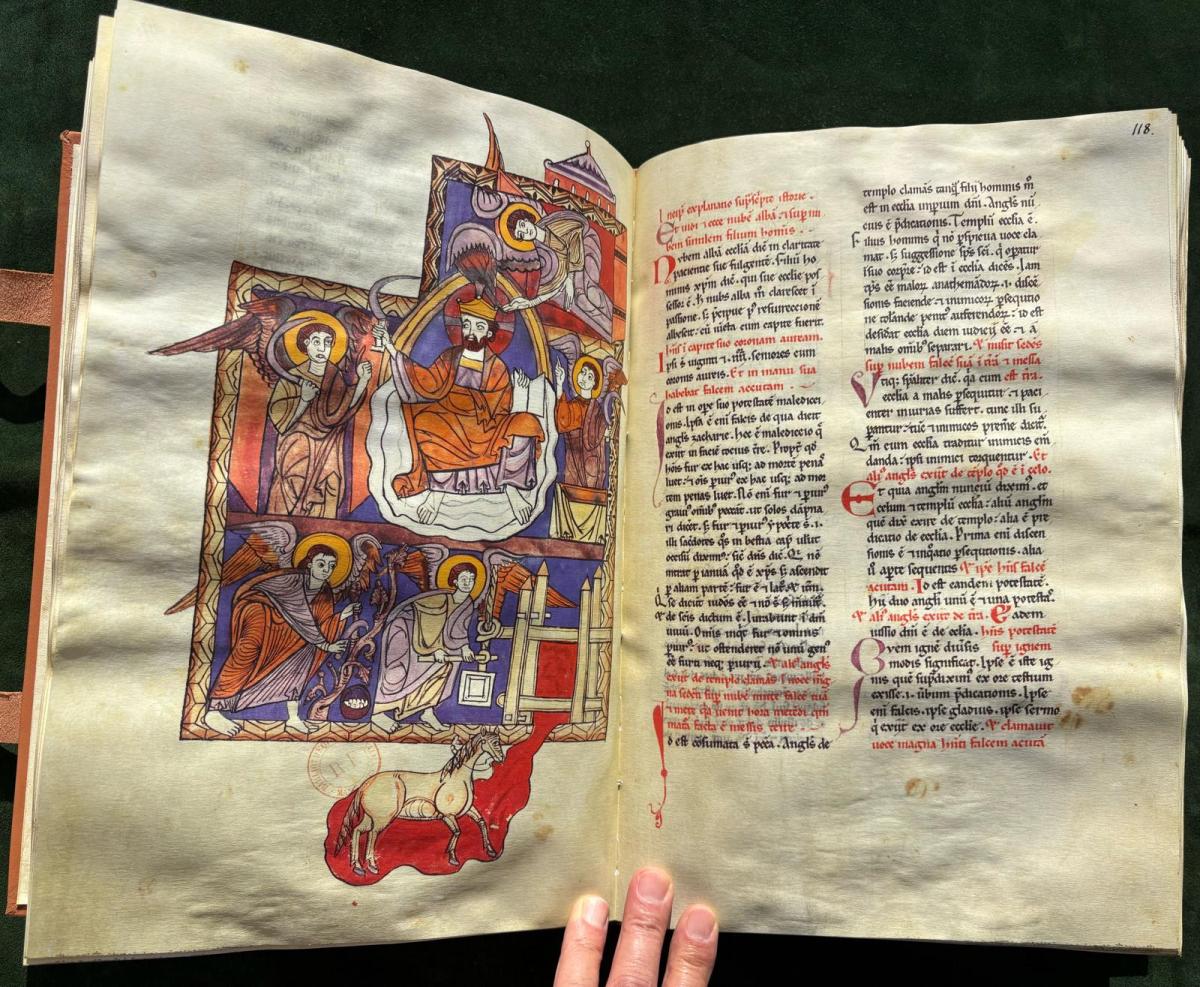 Leopold Delisle, 1880 El códice consta de 157 folios de pergamino, a doble columna de 36 líneas en letra carolina de transición gótica. Sus dimensiones medias son de 345 x 235 mm. Hay un total de 63 folios con miniaturas; algunas a doble folio, como el mapamundi de los folios 24v-25r,[5] o la Jerusalén celestial, fol. 148v-149r.