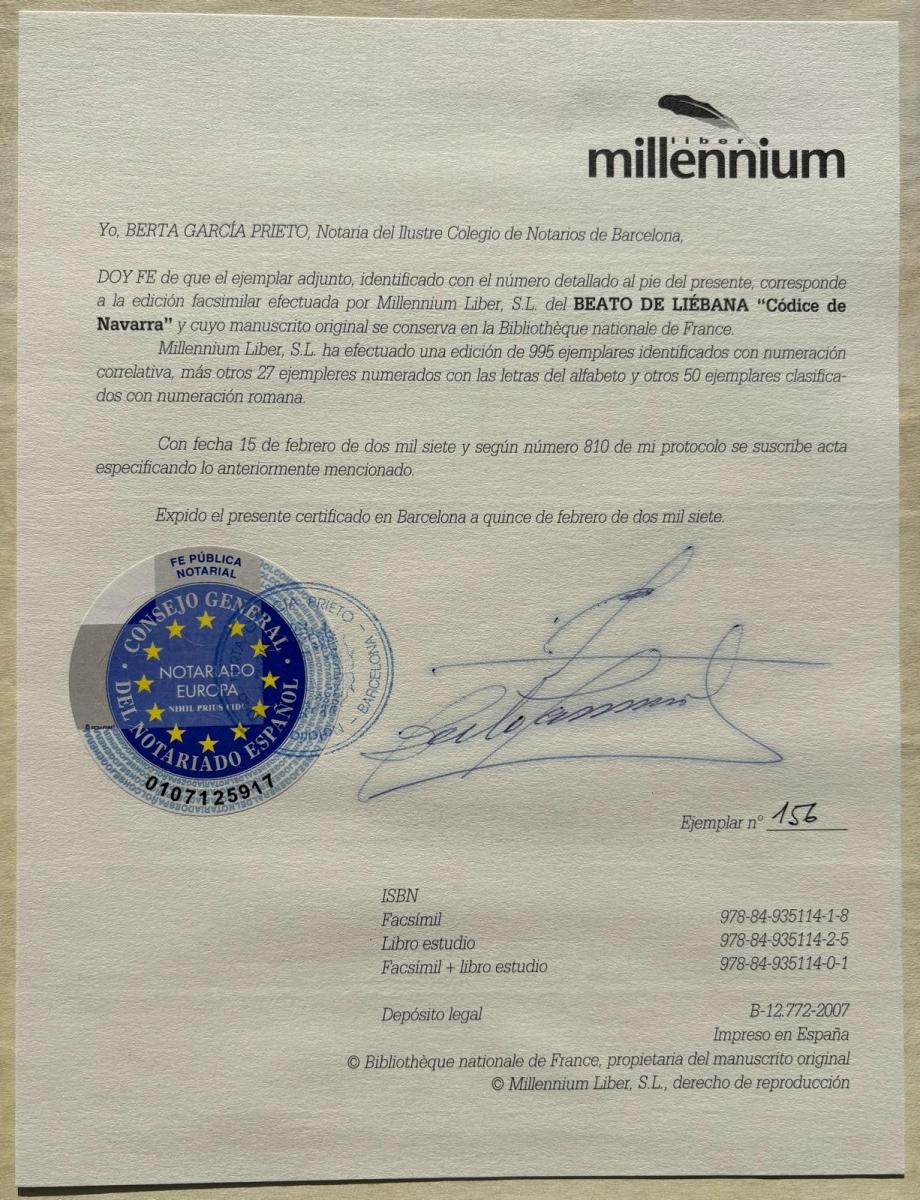 Facsímil Ejemplar 156 de la edición 995. El Beato de Navarra (Beatus navarrais o Beato de Liébana: Códice de Navarra) es la denominación de un manuscrito iluminado que contiene el comentario al Apocalipsis de Beato de Liébana y actualmente depositado en la Biblioteca Nacional de Francia en París, con la signatura Nouv. acq. lat. 1366. No se conoce exactamente su origen pero había estado en la catedral de Pamplona. Parece producido en torno a San Millán de la Cogolla en el XII.
