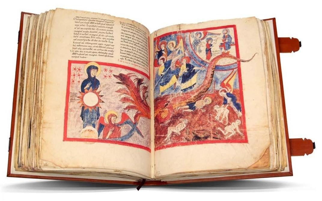 El facsímil ejemplar 274 con libro de estudio. del Beato de Turín reproduce íntegramente el códice del siglo XII conservado hoy en la Biblioteca Nazionale de Turín, un manuscrito de 214 folios en pergamino de gran formato (aprox. 360 × 275 mm) con el texto dispuesto a dos columnas. Recoge el Comentario al Apocalipsis de Beato de Liébana, en su versión ya “clásica”, acompañado del comentario de san Jerónimo al libro de Daniel, genealogías bíblicas y otros textos breves que completan el ciclo exegético, tal como se había fijado en la tradición de los beatos altomedievales. La copia se realizó en letra carolina avanzada, muy cuidada, probablemente en el scriptorium de la catedral de Gerona, y se sabe que toma como modelo directo el famoso Beato de Gerona, obra de los miniaturistas Senior, Emeterio y Ende terminada en el año 975. El volumen contiene 106 miniaturas en total: 93 ilustran pasajes del Apocalipsis y 13 corresponden al libro de Daniel, siguiendo casi siempre la composición del prototipo visigótico, pero renovando colores, arquitecturas y ropajes para adaptarlos al gusto románico. En ellas se aprecia la transición desde la estética mozárabe a un lenguaje plenamente románico: figuras más volumétricas, arquitecturas reconocibles, una gama cromática más variada y un mayor interés por la narración visual de las escenas. El facsímil respeta la secuencia completa del manuscrito, incluyendo iniciales decoradas, rúbricas y cualquier peculiaridad del original, y suele acompañarse de un volumen de estudios moderno en el que se analizan la historia del códice, su relación con el Beato de Gerona, el programa iconográfico de las miniaturas y las características paleográficas y artísticas del ejemplar.