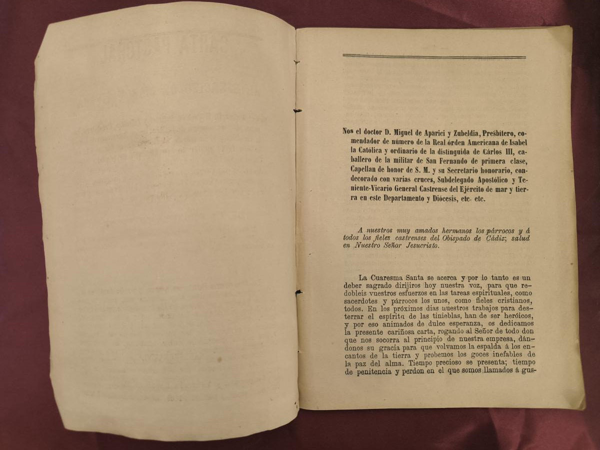 Carta pastoral que dirije al ejército de mar y tierra de la diócesis de Cádiz… con motivo de la próxima Cuaresma
