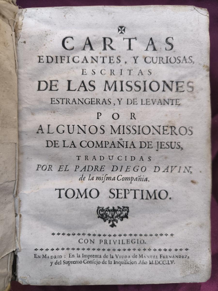 Cartas edificantes y curiosas escritas de las Missiones Estrangeras y de Levante por algunos missioneros de la Compañía de Jesús, tomo VII