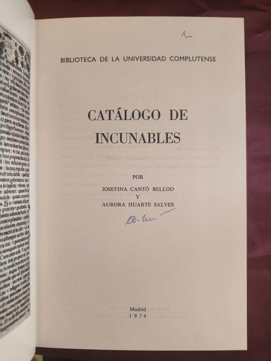 Catálogo de incunables de la Biblioteca Universitaria de Madrid.