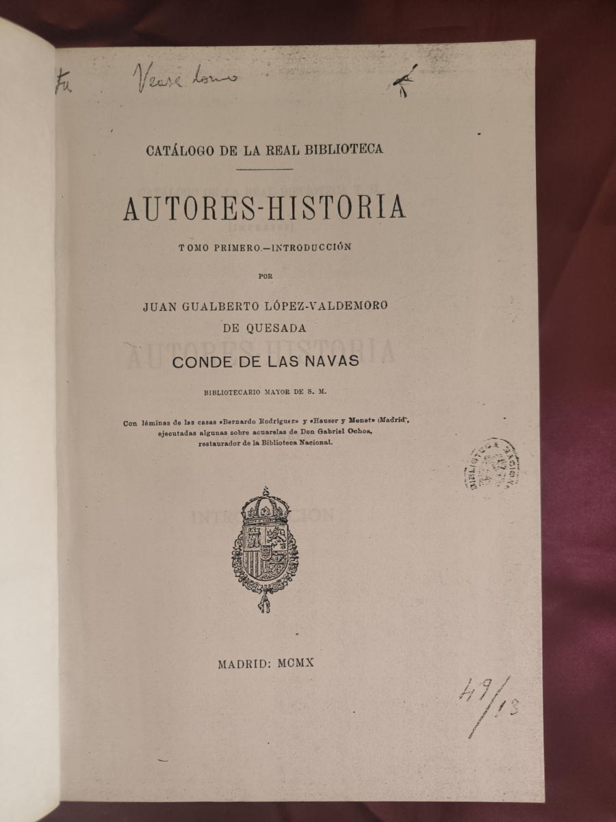 Catálogo de la Real Biblioteca : Tomo I. Autores-Historia. Introducción