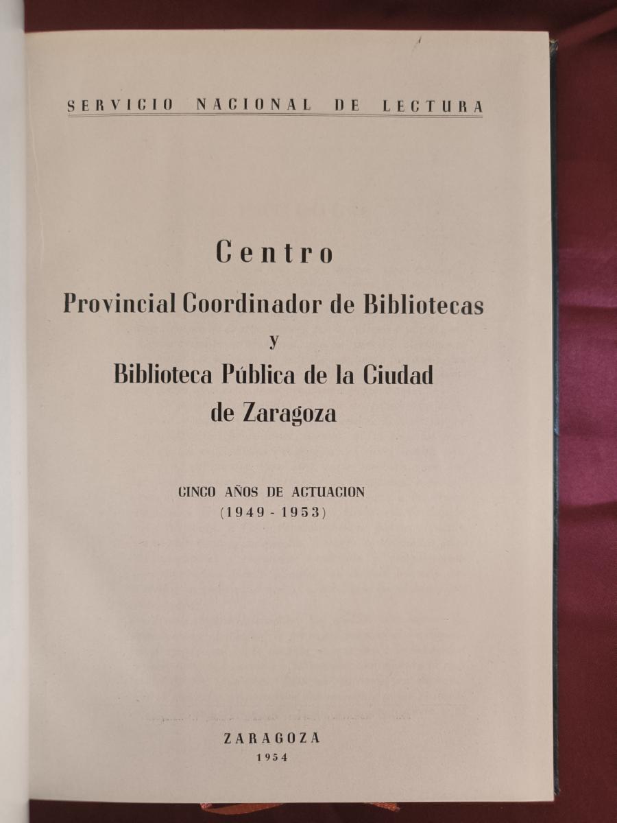 Centro Provincial Coordinador de Bibliotecas y Biblioteca de la Ciudad de Zaragoza: cinco años de actuación (1949-1953).