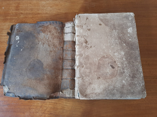 Joaquín Ibarra, 1786. Plena piel con lomo cuajado y orla floreada en planos pero en mal estado, precisa restaurar. Galería de polilla y señales de humedad. Gran folio