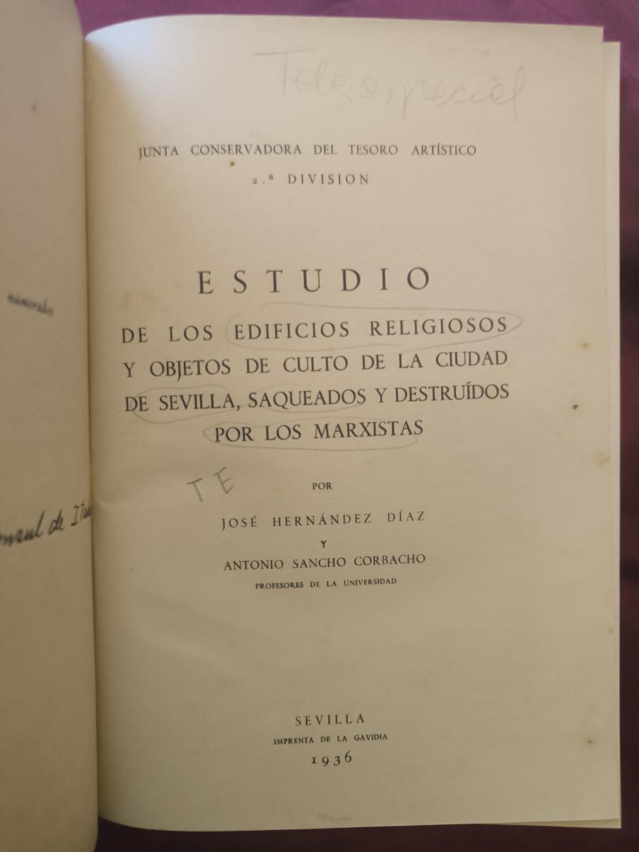 ESTUDIO DE LOS EDIFICIOS RELIGIOSOS Y OBJETOS DE CULTO SAQUEADOS Y DESTRUIDOS POR LOS MARXISTAS EN LOS PUEBLOS DE LA PROVINCIA DE SEVILLA