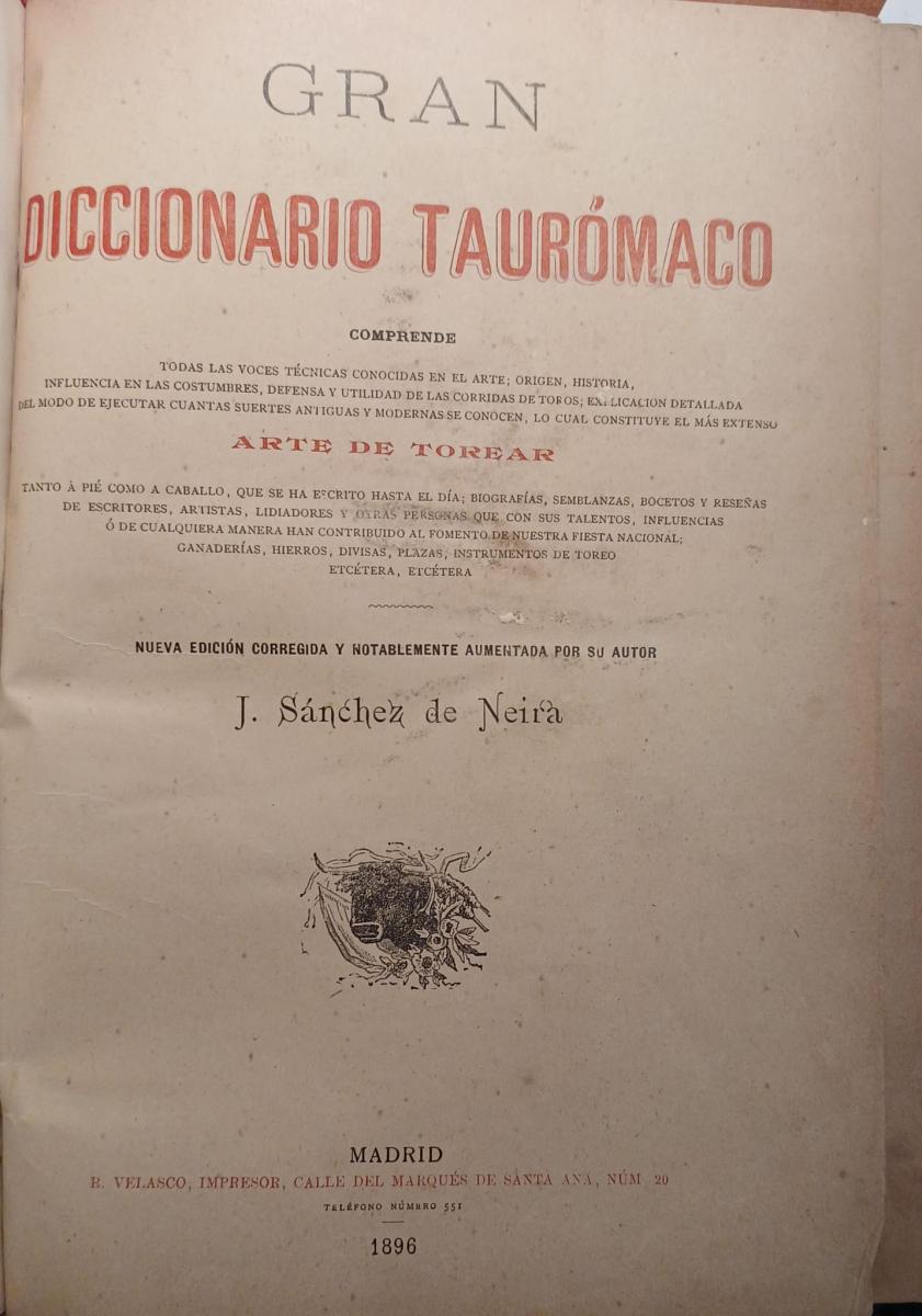 Gran diccionario taurómaco comprende todas las voces tecnicas conocidas en el arte; origen, historia etc. lo cual constituye el más extenso arte de torear tanto a pie como a caballo, que se ha escrito hasta el día, biografías, semblanzas, etc.
