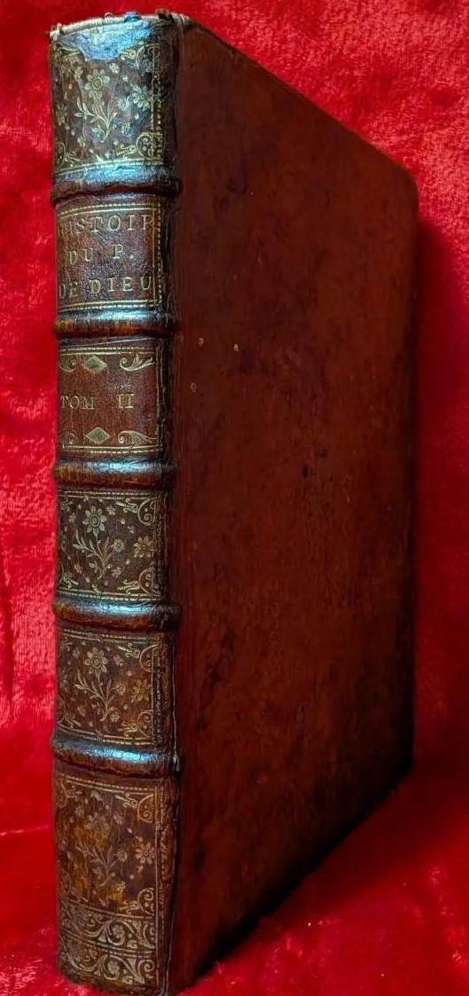 Plena piel de época con nervios y lomo cuajado, cortes pintados, pequeña rasgadura en la unión lomo-plano. 4º mayor