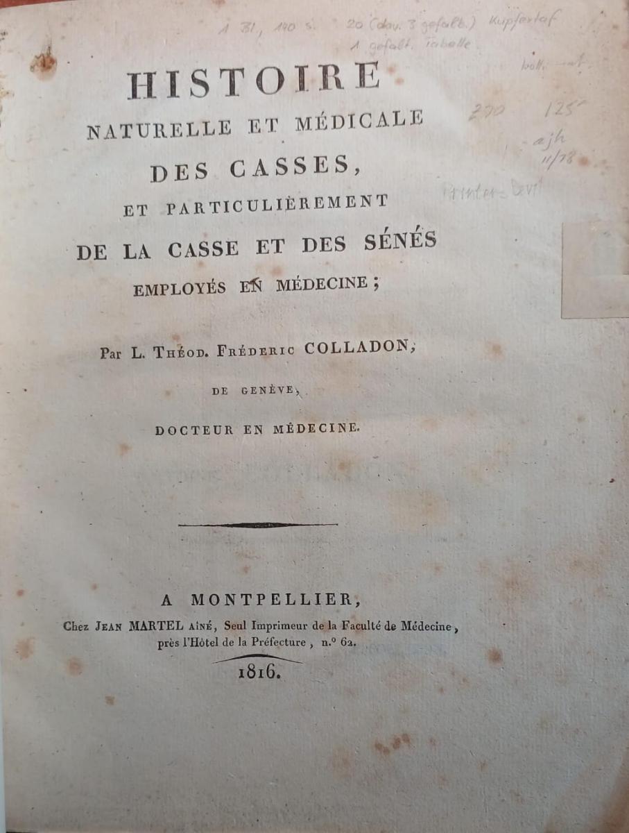 Histoire naturelle et médicale des casses, et particulièrement de la casse et des sénés employés en médecine.