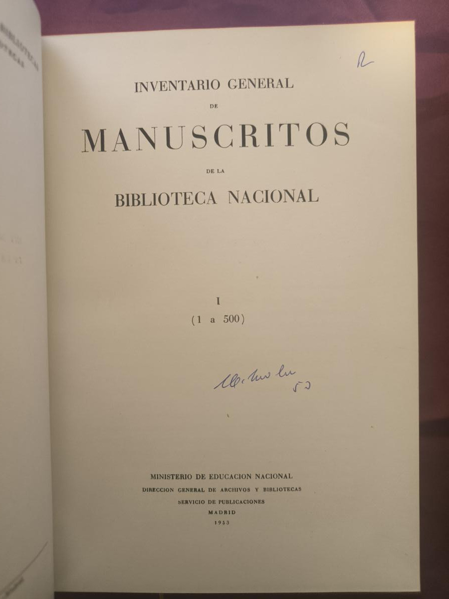 Inventario general de manuscritos de la Biblioteca Nacional (Volumen I) 1 a 500