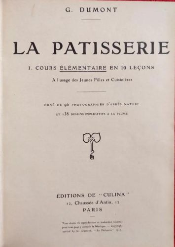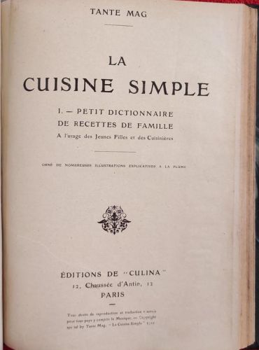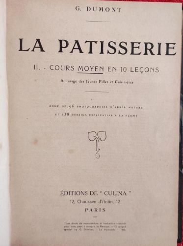 La patisserie, 2 tomos Cours elementaire et cours moyen - La cuisine simple. Petit dictionnaire de recettes de famille faciles à executer - La cuisine bourgeoise a la portée de tous. Petit ... (sigue)