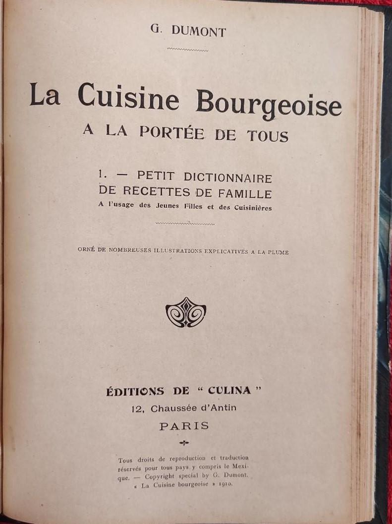 (continúa el título anterior)...dictionnaire de recettes de famille a l'usage des jeunes filles et des cuisiniéres.