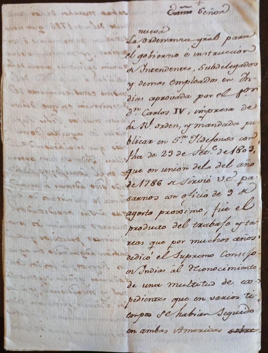 (Manuscrito) Memoria sobre ordenanza para el gobierno e instrucción de Intendentes subdelegados y demás empleados de Indias