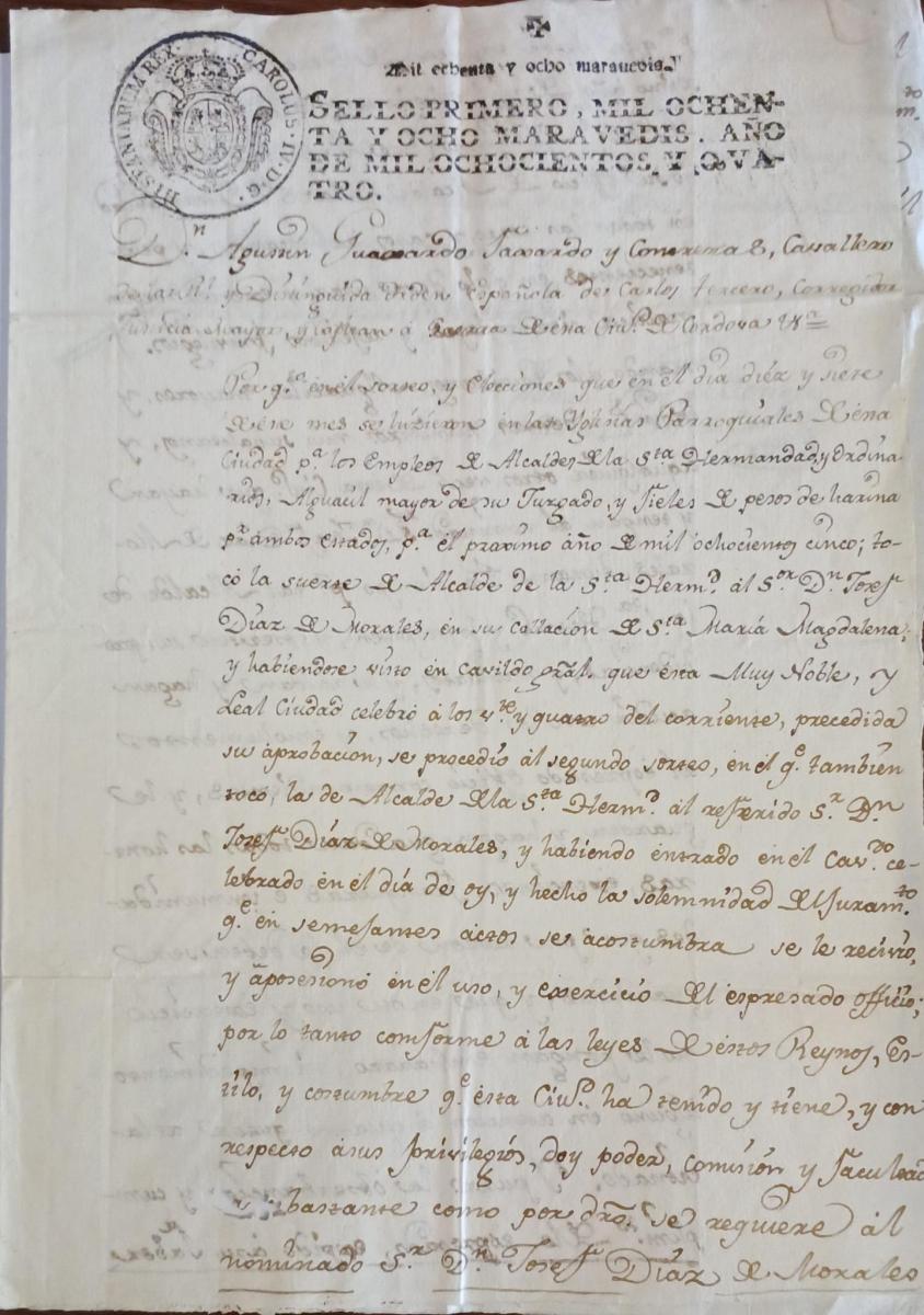 En Córdoba, a 31 de diciembre de 1804". Sello