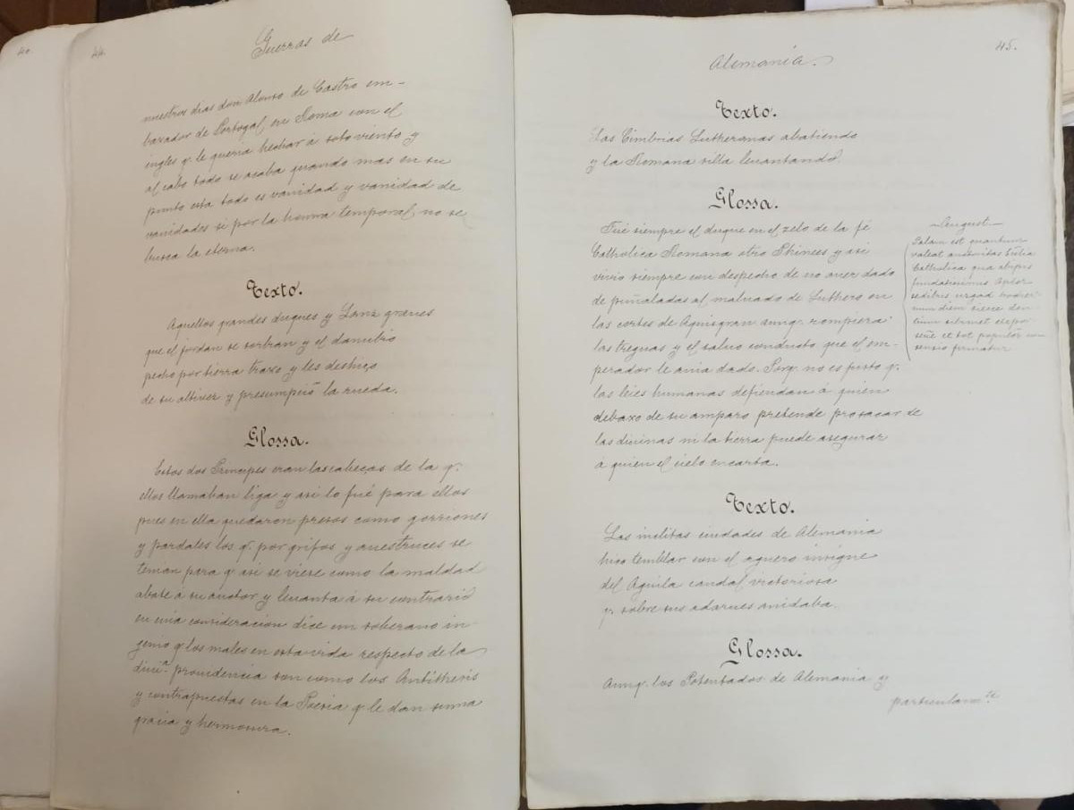 (Manuscrito) Panegírico del Excellº. Don Fernando Alvarez de Toledo Duque de Alba que Dios aya. Compuesto en verso latino y rima castellana con glossa del mismo auctor a instancia y devocion de un inclito prelado en estos reinos de España. Año 1585