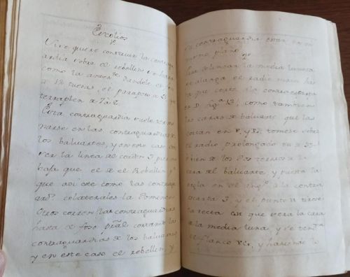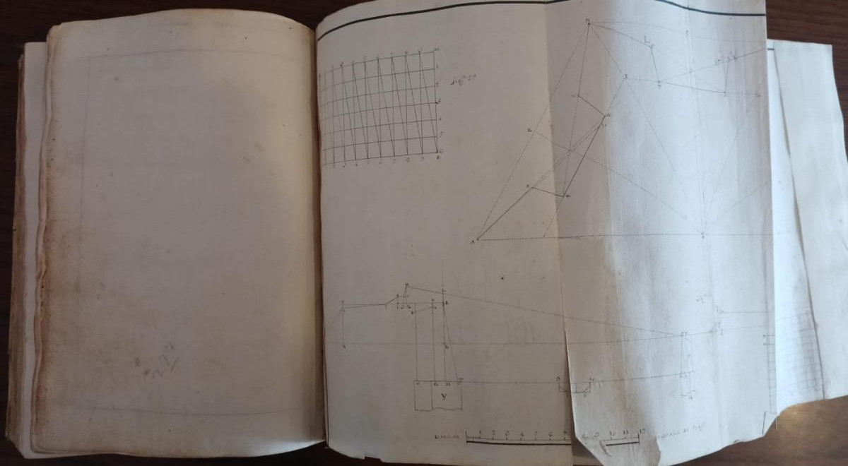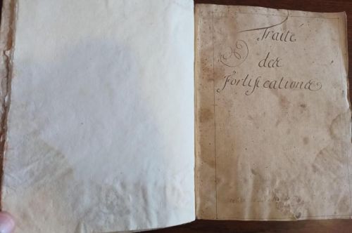 1746, sin autor; probablemente copia de alguna edición impresa. Sin paginación, unas 200 hojas manuscritas mas numerosas láminas dibujadas, muchas de ellas desplegables. Pergamino con pérdidas en el cabecero y planos, precisa restaurar; primeras hojas con