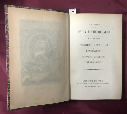 Maximes du duc de La Rochefoucauld, précédées d'une notice sur sa vie par Suard. Pensées diverses de Montesquieu. Oeuvres choisies de Vauvenargues.