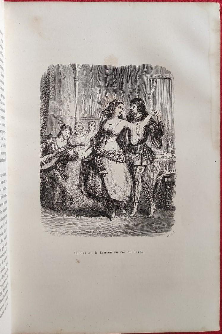Más de 100 grabados a toda página e intercaladas en el texto por Baron, Johannot, Emy, Grandville y otros. Dimensiones: 27 x 19 cm. Paginación: Portada + XI + 562 + [1]pp. Peso: 2 kg.